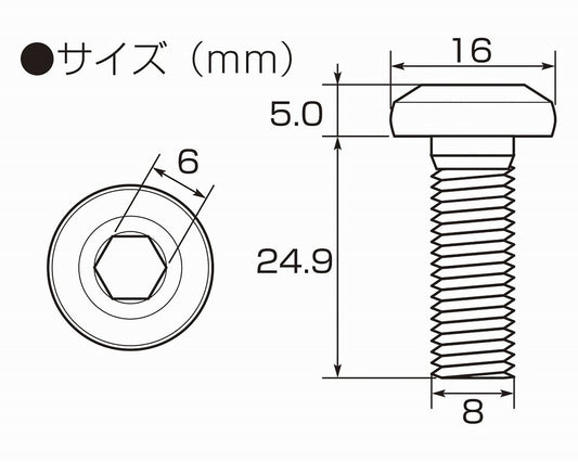 ローターボルト ステンレス カワサキタイプ M8X30.2X5.1 P1.25 5個