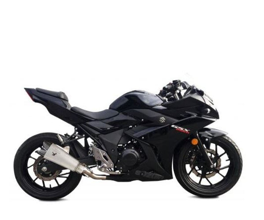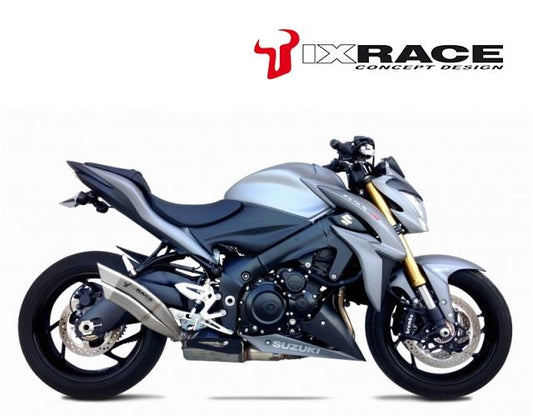 IXRACE フルEXマフラー 375 mm マットポリッシュ M10 ヘキサゴン デュアルエンド GSX-R 125/GSX-S 125 '17-'18