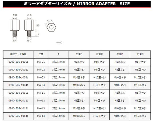 ミラーアダプターセット ブラック 対辺17mm/M10 MA-03 汎用