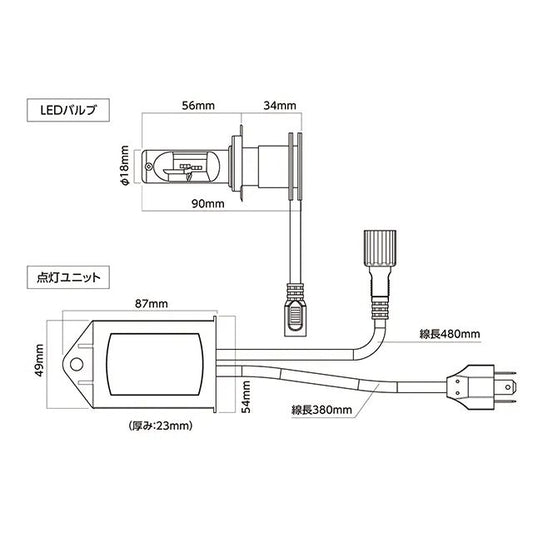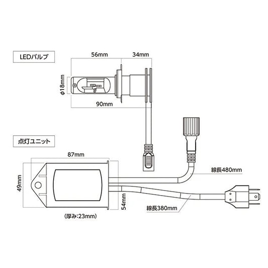 LEDバルブ ヘッドランプ用 H4 12V 16/16W 1500/1100lm 6300K ホワイト 1個入
