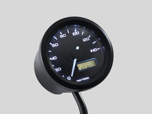 電気式アジャスタブル スピードメーター 白盤 黒ボディ