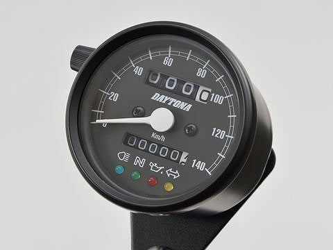 機械式スピードメーター φ60 ブラックボディ/ブラックパネル 140km/h インジケーター付き