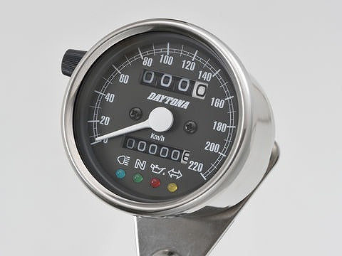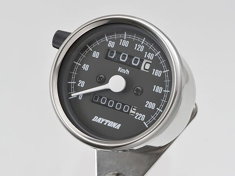 機械式スピードメーター φ60 ステンレスボディ/ブラックパネル 220km/h