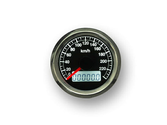 電気式アジャスタブル スピードメーター 黒盤 ステンボディ