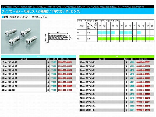ウインカー\U0026テール用ビス 2種溝 十字穴 タッピング (ステンレス) 4X35 4個