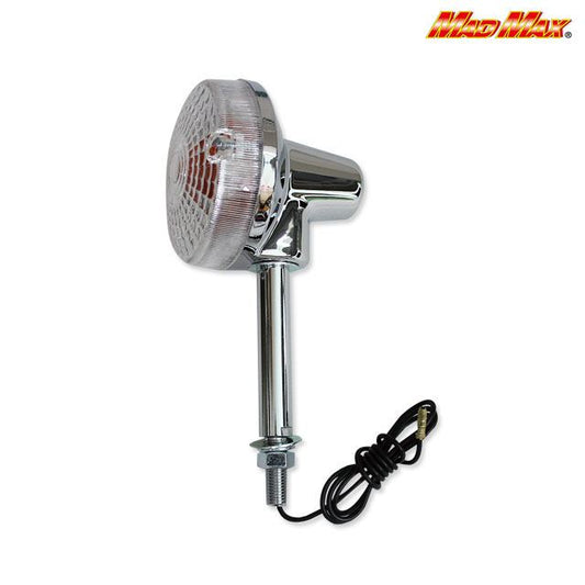 丸型ミニヨーロピアンウインカー M10×73mm/アルミ製取付ステー付 シルバー/クリア 2個セット 汎用