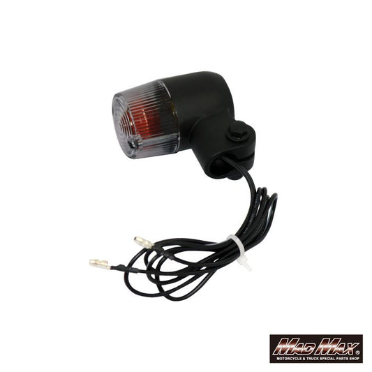 丸型ミニヨーロピアンウインカー M10×73mm/アルミ製取付ステー付 ブラック/クリア 2個セット 汎用