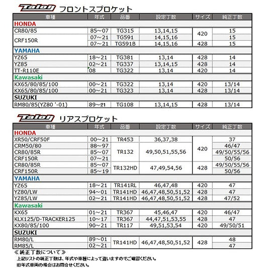 スプロケット リア 420サイズ TR141 ブルー 48丁 YZ65