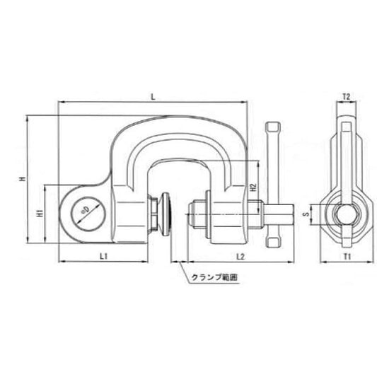 水平ヨコ吊クランプ 容量0.5トン クランプ範囲0~35mm
