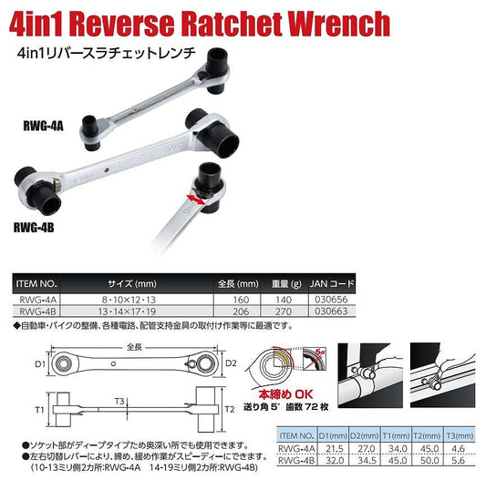 4in1 リバースラチェットレンチ 8/10/12/13mm