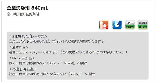 パーツ&ブレーキクリーナー840 840ml 有機溶剤中毒予防規則非該当速乾性洗浄剤