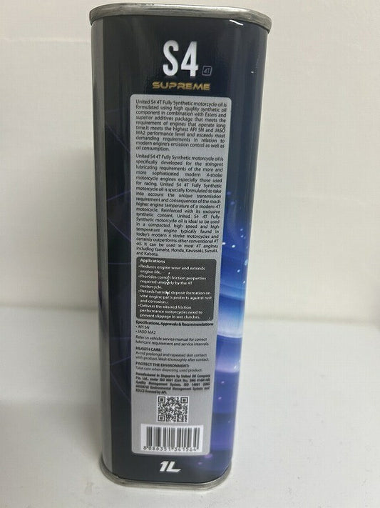 S4 SUPREME 10W-40 MA2 SN 1リットル缶 100%合成油 バイク オイル 4ストオイル 4サイクル エンジンオイル