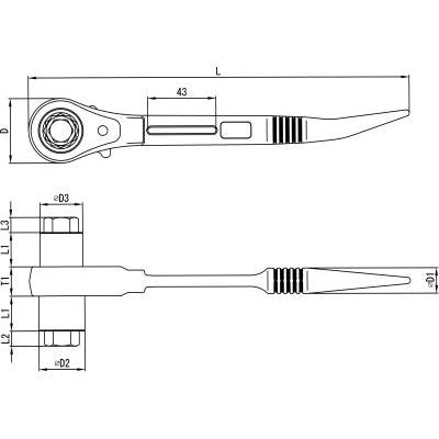 4サイズラチェットレンチ 六角対辺14×17mm/19×21mm ショートタイプ