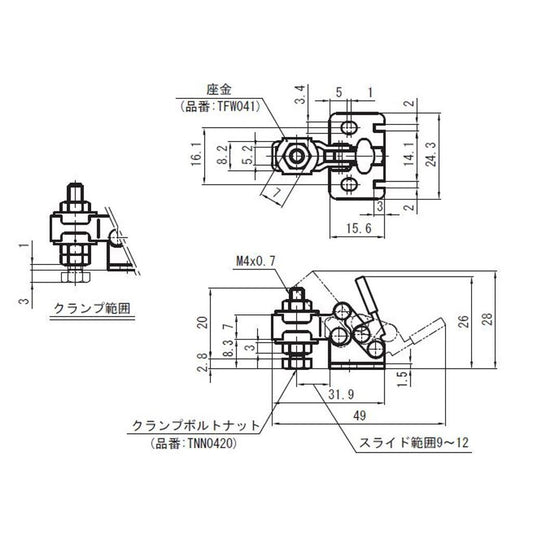 下方押え型トグルクランプ 垂直ハンドル式 フランジタイプ