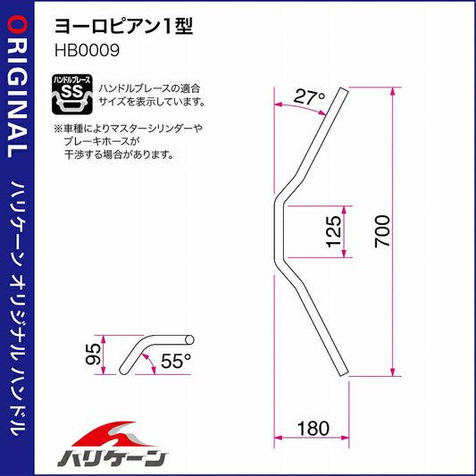 ヨーロピアン1型 キット専用ハンドル クロームメッキ Ninja ニンジャ250/R