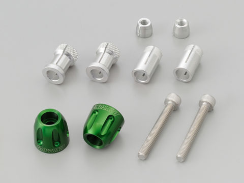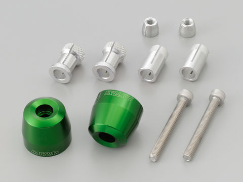 アルミビレットバーエンド グリーン ハンドル内径φ14~φ19 スピンナータイプ