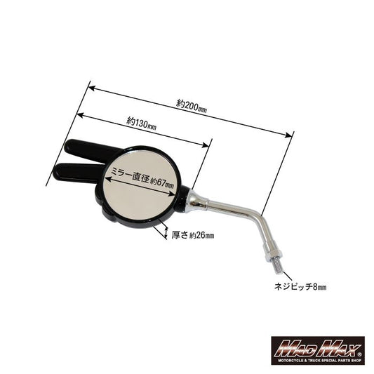 丸形ミラー 8mm ブラック 左右共通 汎用 1本入り