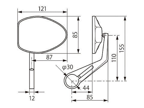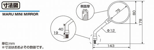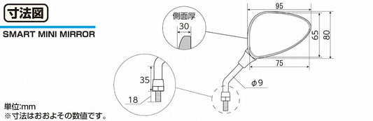 スマートミニミラー 右側逆ネジ/8mm ブラック 左右1セット 汎用