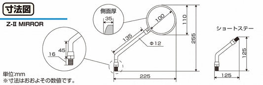 Z-2 ミニミラー ショートステー/10mm メッキ φ110 1本 汎用