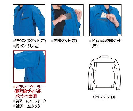 長袖ブルゾン ロイヤルブルー 春夏用 メンズ