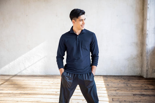 長袖ポロシャツ ドライメッシュ ブラック オールシーズン ユニセックス