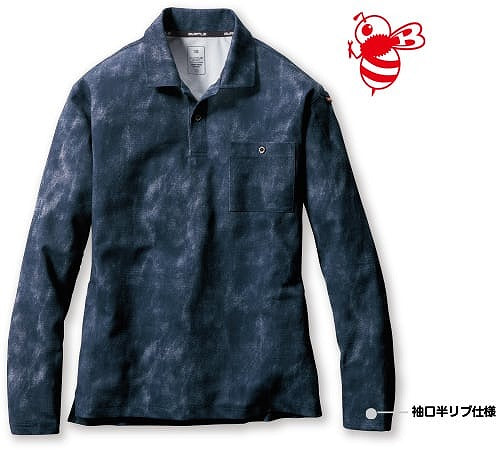 長袖ポロシャツ サーフブルー杢 オールシーズン ユニセックス