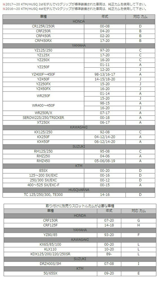 V2 ロックオングリップ スロットルカム M 250-450SX-F 250-500EXCF FC/FE/FS250-501 MC250F-450F