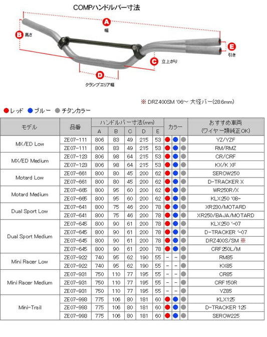 COMP ハンドルバー ハンドル レッド 赤 DualSports LOW