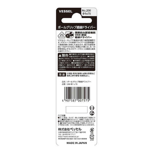 200 +1X75 ボールグリップ絶縁ドライバー