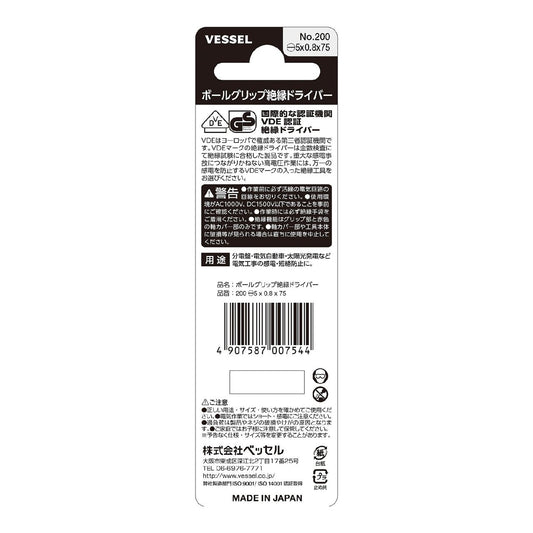 200 -5X0.8X75 ボールグリップ絶縁ドライバー