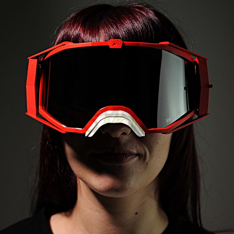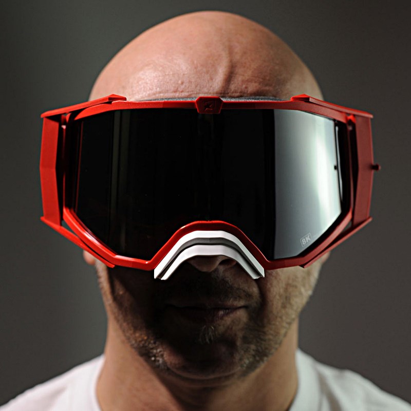 8Kトップゴーグルは、ライトスモークミラーシングルレンズとノーズガードを標準装備。