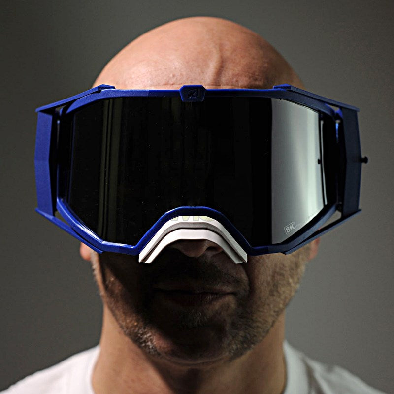 8Kトップゴーグルは、ライトスモークミラーシングルレンズとノーズガードを標準装備。