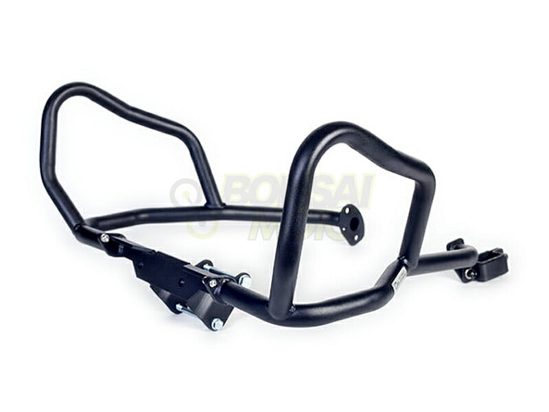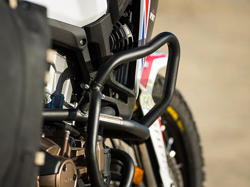 取り付けポイントからクラッシュポイントが近いコンパクトでタフなクラッシュバーです。 この構造により、アフリカツインのスポーティでアグレッシブなデザインを活かすことに成功しました。