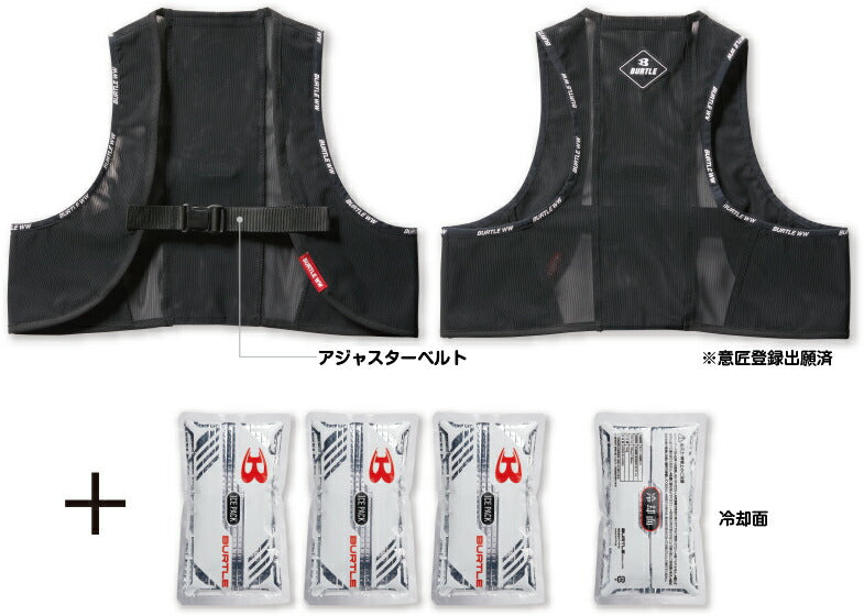 【BURTLE バートル AC350S フリーザーベスト&アイスパックセット 35/ブラック フリーサイズ ユニセックス 春夏用 インナー 撥水 防汚 熱中症対策 保冷剤 アウトドア キャンプ 釣り 作業服 作業着 ユニフォーム】