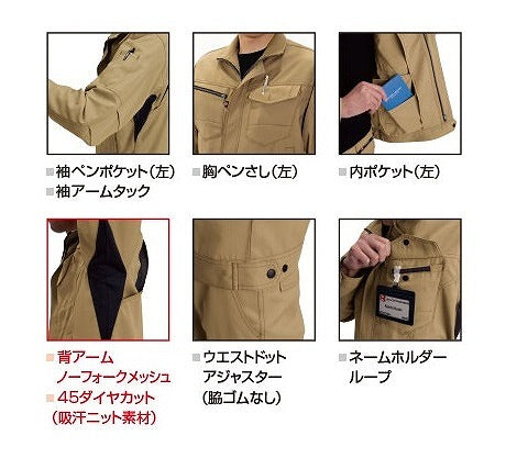 ・素材:ドビークロス(校倉構造)、点接触清涼素材、吸汗速乾、制電ケア設計
