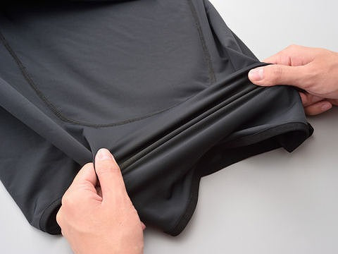 生地にはストレッチ素材を採用することでソフトな装着感と体へのフィッティングを両立させました。