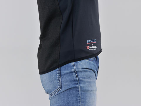 その他の部位にはストレッチ生地を採用し、衝撃時に瞬間硬化するSASTEC製プロテクターを、