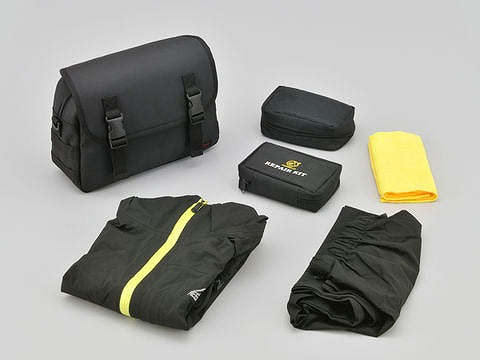 ・シートバッグと同じ強度を持つ優れたポリエステル1680デニール生地を採用。フラップ、前面、側面の生地の間にウレタン芯を入れることにより型崩れしにくく、シートバッグと同時装着した際に統一感がある見た目になります。側面についているパルステープは幅を25mmにしてポーチを付けやすく、レインカバーはバッグに合わせて立体的に仕上げバタつきを抑えました。