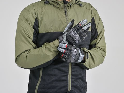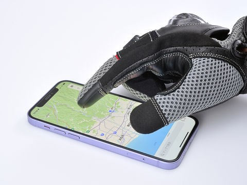 手の平側は全面パンチング加工を施した本革に変更。指股にはストレッチ素材を採用することで、特徴であるソフトな装着感はそのまま、従来よりも格段に安全性と操作性が向上しました。カーボンナックルプロテクター付き。タッチパネル対応です。