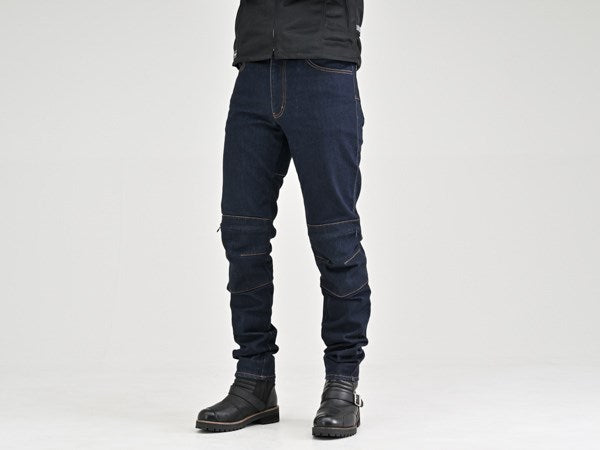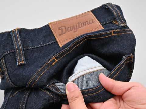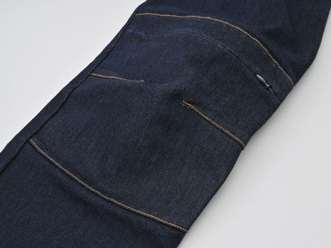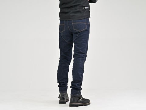 16ozの厚手コーデュラ生地を採用した高強度、耐摩耗性、耐引裂性に優れた寿命の長い厚手のジーンズ。膝プロテクターポケットは外側に設置し、足の入れやすさ、履きやすさとプロテクターの外しやすさを重視しました。ポケットと股下に当て布をつけ、シートとの擦れを防止。股下はバイクにまたがりやすいライディング姿勢にフィットする形状かつ直立時も綺麗に見えるシルエットに仕上げました。膝のプロテクターには、【CE規格】をクリアしたTRIPLEFLEXタイプのSAS-TECを標準装備。