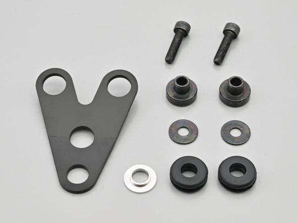 ■デイトナ社VELONAφ48メーターなど、デリケートな電気式メーター取り付けに最適な防振タイプのメーターステー。2.6mm厚のスチール材に防振ラバーを組み込みました。メーター取付ピッチ33mm。車体へはM10ボルト(付属なし)にて取り付けます。付属の変換ワッシャーを使用すればM8ボルトでも装着可能。ステー中央部にメーター配線を通す穴を設けたことで、スマートに取り付けできます。寸法図を見て、車両に合った形状のステーをお選びください。OPTIONフリーブラケット(63531)と組み合わせれば、取付自由度がさらに広がります。