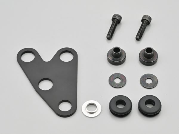 ■デイトナ社VELONAφ48メーターなど、デリケートな電気式メーター取り付けに最適な防振タイプのメーターステー。2.6mm厚のスチール材に防振ラバーを組み込みました。メーター取付ピッチ33mm。車体へはM10ボルト(付属なし)にて取り付けます。付属の変換ワッシャーを使用すればM8ボルトでも装着可能。ステー中央部にメーター配線を通す穴を設けたことで、スマートに取り付けできます。寸法図を見て、車両に合った形状のステーをお選びください。OPTIONフリーブラケット(63531)と組み合わせれば、取付自由度がさらに広がります。
