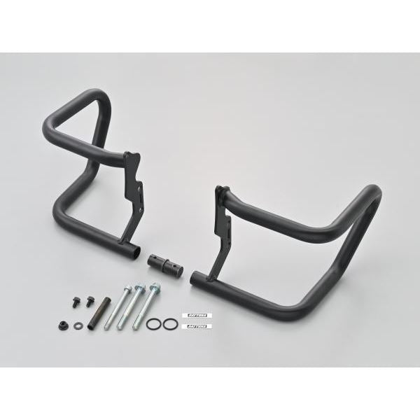 不慮の転倒の際、ライダーや愛車へのダメージを軽減させるエンジンガード。装着にマフラーの脱着は不要です。