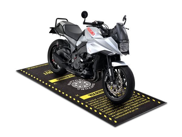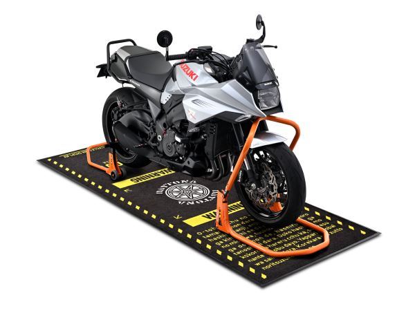 ゴム素材のベースに高耐久ナイロン起毛を組み合わせた、バイクの整備・保管に最適なメンテナンスマット。オイルなどを通さないゴムベースが床の汚れを防ぎ、サーキットやガレージでの使用に最適です。汚れた際は高圧洗浄機などで手軽に水洗いが可能。ミリタリーテイストをベースに、セブンスターホイールのロゴを中央に配置。クラシックモデルとの相性も抜群。