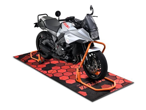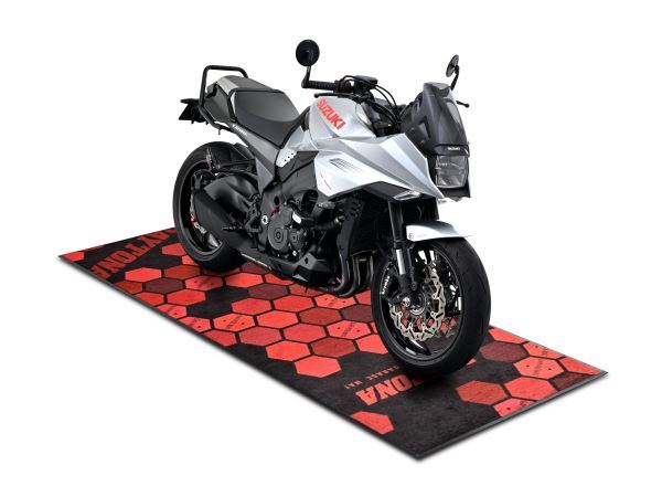 ゴム素材のベースに高耐久ナイロン起毛を組み合わせた、バイクの整備・保管に最適なメンテナンスマット。オイルなどを通さないゴムベースが床の汚れを防ぎ、サーキットやガレージでの使用に最適です。汚れた際は高圧洗浄機などで手軽に水洗いが可能。近未来を感じさせるデザインが、デジタルメーター搭載の最新モデルに最適。