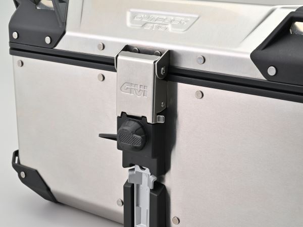 GIVIアルミケースの定番OBKシリーズがEVOとなってさらに進化。荷掛けフックが大型化し使いやすくなりました。上蓋開口調整システム(ARHS)により上蓋の開口アングルを調整可能。ヘルメット2個収納(ヘルメットの形状サイズによる)。モノキータイプのアルミトップケース。セキュリティーキー付属。