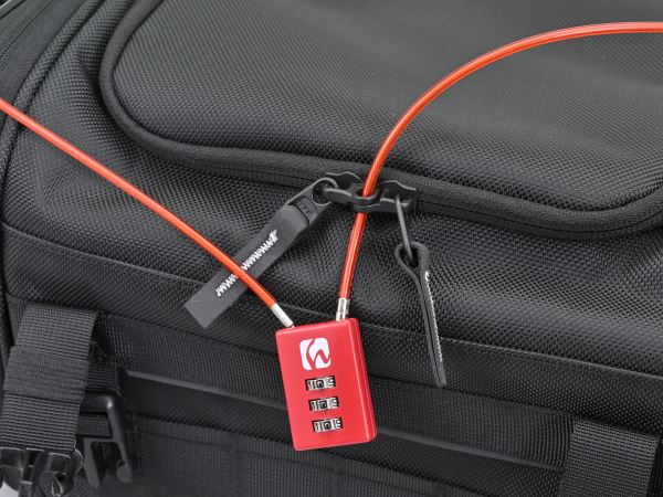 ■商品説明 ヘルメットやバッグのイタズラ抑止に役立つダイヤルロック。 ロック本体はヘッドが360度回転するので使いやすく、ダイヤルは「0〜9」の数字3桁で任意に設定可能。 仕様 ワイヤー長:1300mm 南京錠対応ファスナー(リングタイプ)を採用したバッグに取り付けが可能です。 カギが増えないダイヤル設定。 タイプ:ストレートタイプ カラー:レッド