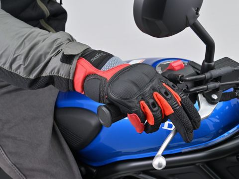 ■商品説明 手の平や甲に本革やケブラー生地を採用し、ナックル、指、手首のプロテクターやパームスライダーなど組み合わせることで、安全性に最も配慮したメッシュグローブ。特に危険な小指側のプロテクション性を重視しました。指先にはストレッチ素材やシャーリングを施し、ナックルプロテクターもフローティング構造にすることで、握り心地や通気性と安全性を両立しています。 仕様 素材:やぎ革(表地)/ポリエステル/ナイロン/ネオプレン/ケブラー タッチパネル対応 対応シーズン:春/夏 カラー:ブラック/レッド サイズ:M 注意事項 ※手とグローブの密着度によりタッチパネルの感度は異なります。