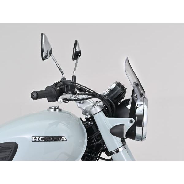 GB350C専用ステーとスクリーンのセット。スクリーンは耐衝撃性に優れるポリカーボネートを採用することで、まさかの転倒時でも安心です。