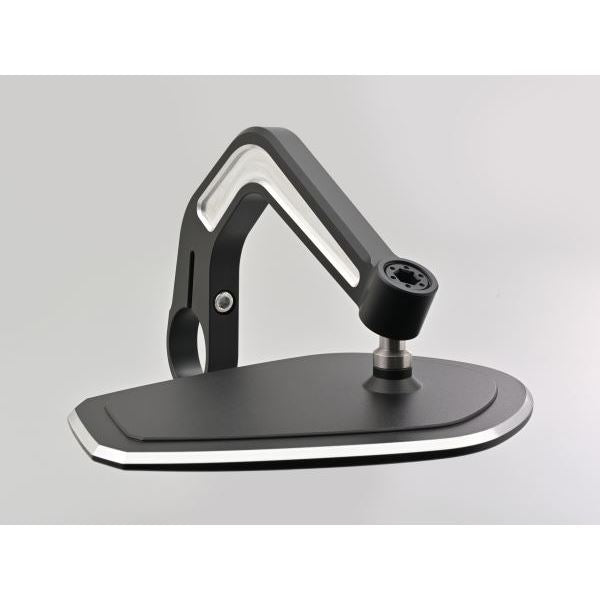 低くかまえた刃のようなデザインのアームを採用。ミラーを下付けしなくても低い取り付けが可能